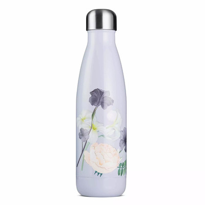 Vannflaske i rustfritt stål i lilla med blomster
