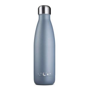 Vannflaske i rustfritt stål i en vakker blå farge med en liten måne på siden.