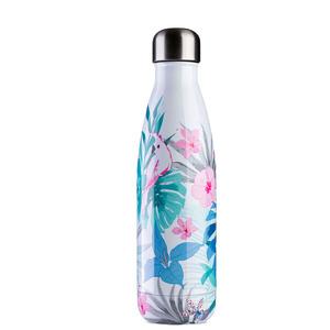 Sommerlig fin vannflaske med blomster og papegøye . Bruk den på skolen, på arbeidet, i treningssenteret eller hvor du har bruk for at vannet holder den ønskede temteratur.