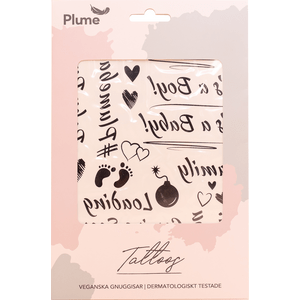 Å være gravid byr på store øyeblikk; graviditetsavsløringen, de forskjellige stadiene, kjønnsavsløringen og babyshower er bare noen av dem! Med de midlertidige tatoveringene fra Plume kan du gjøre de store øyeblikkene ekstra morsomme og fange øyeblikkene på kamera, slik at du alltid kan se tilbake på tiden du var gravid. Tatoveringene er f.eks. ideell for å dokumentere de ulike stadiene i svangerskapet, da tatoveringene rett og slett er tatovert direkte på magen – og så er du klar for en liten fotoshoot med ulike sitater og tekster som kan sette prikken over i-en på bildene dine.
